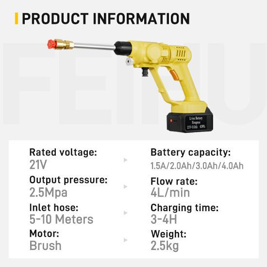 FEIHU 21V Car Washer High Pressure Water Gun with Cordless Car Wash Gun for Car Cleaning Wash Machine