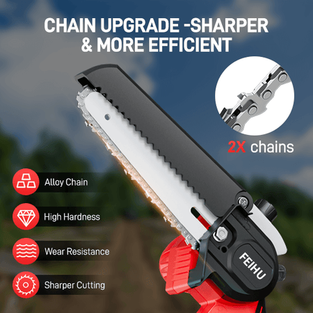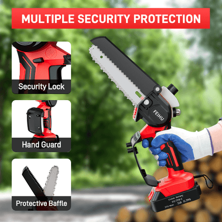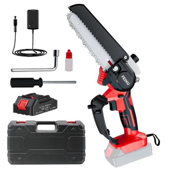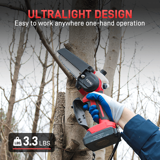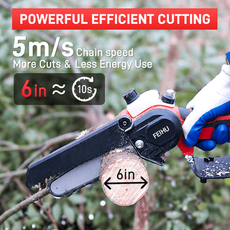 FEIHU 21V Cordless Mini Chain Saw 6 inch Electric Chainsaw for Wood Cutting with Handheld Battery Power