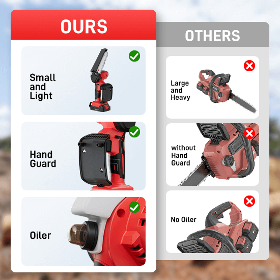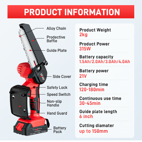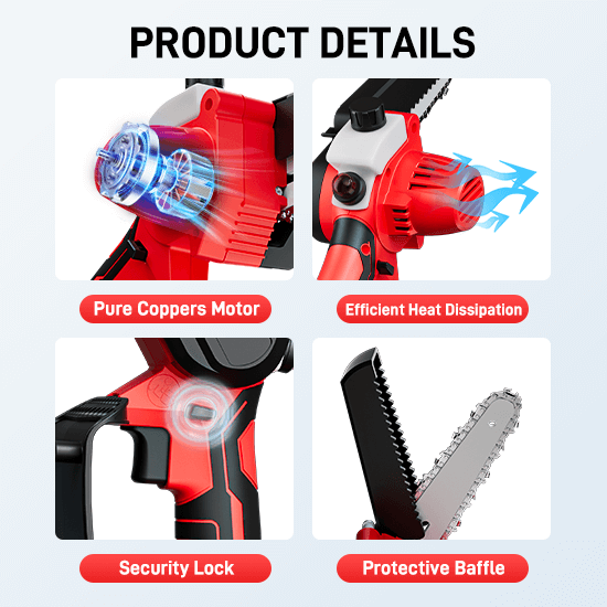 This cordless mini saw is very small and easy to carry and operate. Chain super wear-resistant material, cutting sharp and not easy to deform, can improve work efficiency.