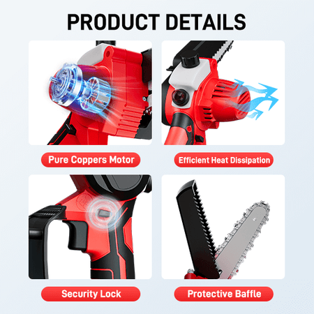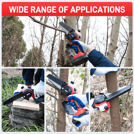 This 6inch mini chainsaw provides a solution for garden repair and daily wood processing, suitable for trimming trees, trimming garden plants, small wood processing, making wood products and more.